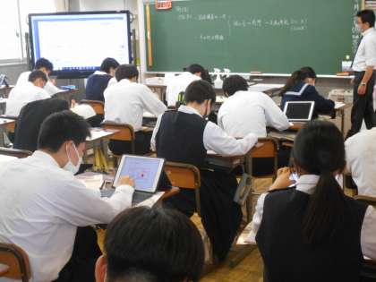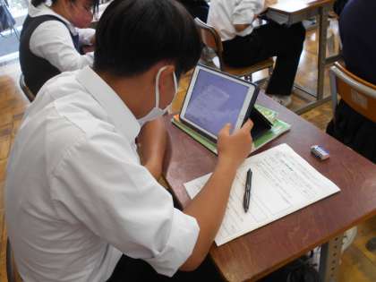 3年生の社会の授業は公民。三権分立について、タブレットを使ってまとめていました。