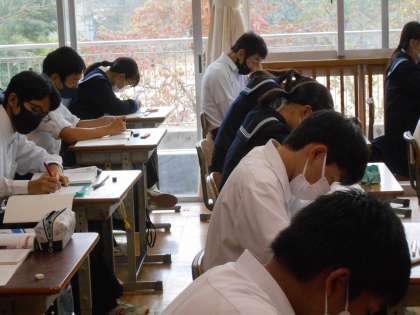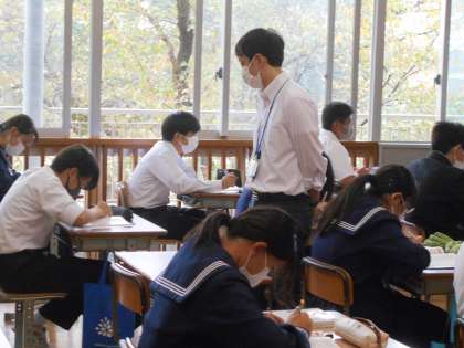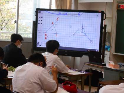 3年生の数学の授業。相似な図形のかき方について取り組んでいました。