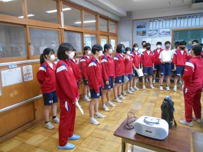 3年生の合唱練習の様子です。皆心を合わせて頑張っていました。写真は1・2組です。