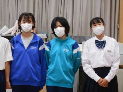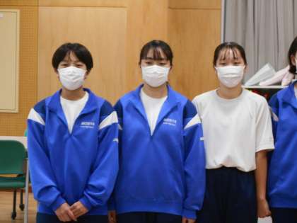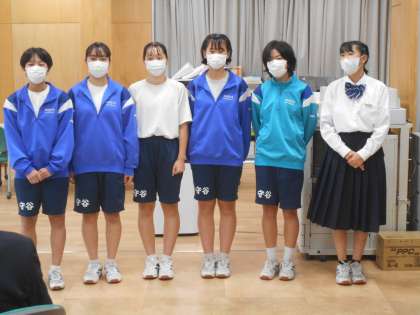 昨日昼休みに、女子バスケットボール部が報告に来ました。県南大会3位という結果を収め、県大会に向けても気持ちを引き締めていました。これからも頑張ってください。