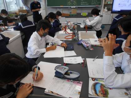 2年生の理科の授業は電流と磁界について。コイルの周りの磁界について、まとめていました。