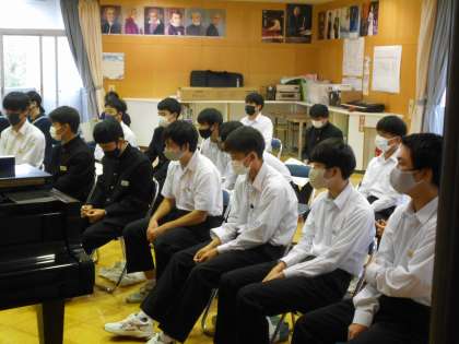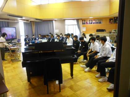 3年生の音楽の授業は、合唱。ハーモニーの確認を全体で行っていました。