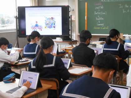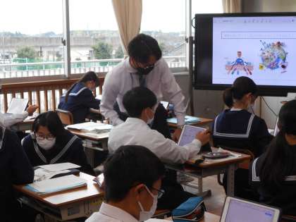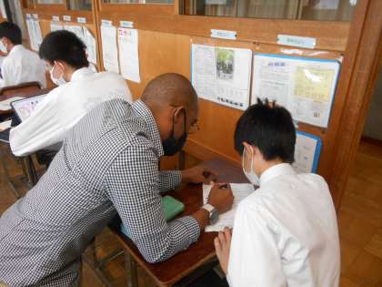 2年生の英語の授業は,自分が環境大臣になったとしたら、やらなくてはいけないことを、英文で表す活動。皆意欲的に活動していました。