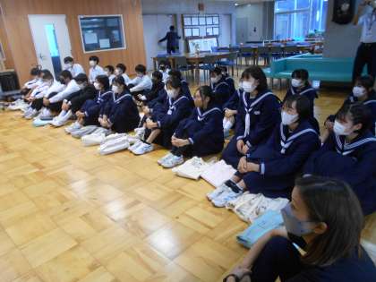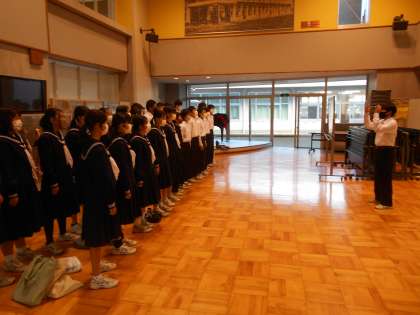 コミュニティーホールで、1・2年の合同合唱練習を行いました。それぞれ感想を述べ合い、高め合っていました。