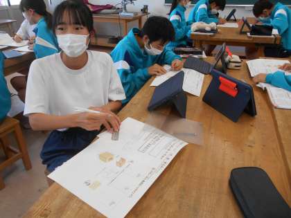 1年生の技術の授業は、等角図のかき方。皆意欲的に取り組んでいました。