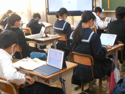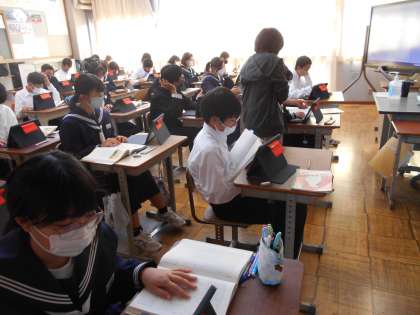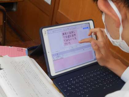 2年生の国語の授業は、『走れメロス』。登場人物の言動の変化について考えていました。