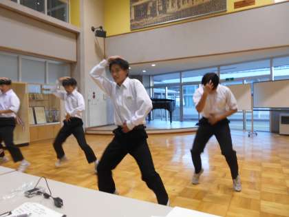 放課後、コミュニティーホールで、松風祭ステージ発表のオーディションが行われました。歌ありコントありダンスアリと、多様なパフォーマンスが披露されました。