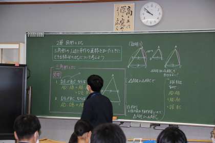3年生の数学では、図形と比の学習をしました。証明問題にもつながる重要な学習です。