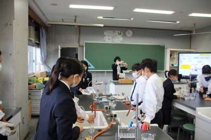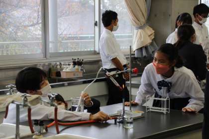 1年生の理科では、ワインを熱して、エタノールを抽出する実験を行いました。