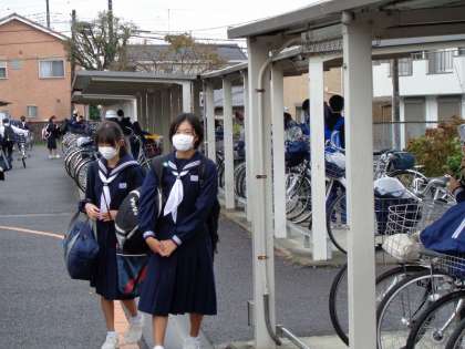 生徒が元気に登校してきました。あいさつ運動の声が爽やかに響いていました。今週も頑張りましょう!