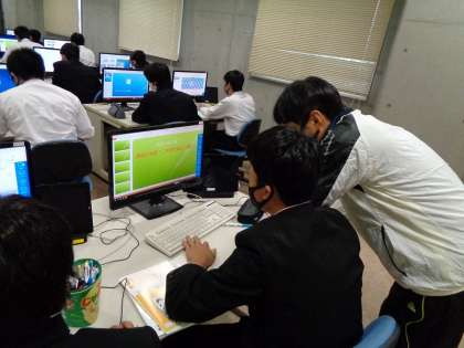 3年生の技術の授業は、プレゼンテーションソフトの活用について。体育祭のいいところを表現していました。