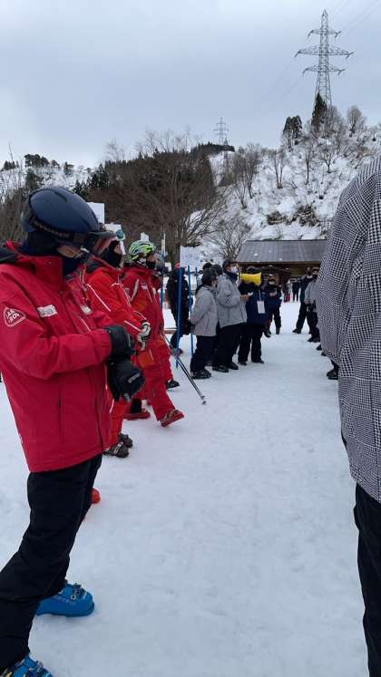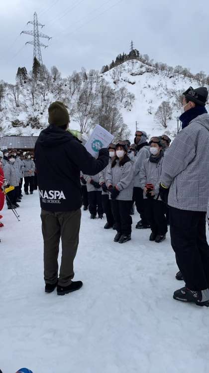 無事にスキー実習が終了しました。写真は閉校式の様子です。実行委員を中心にして進め、インストラクターの先生方に感謝を込めて挨拶しました。