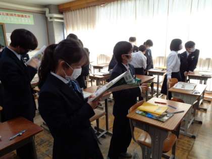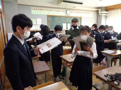 1年生の英語の授業は、会話文。実際に会話をして覚えていました。