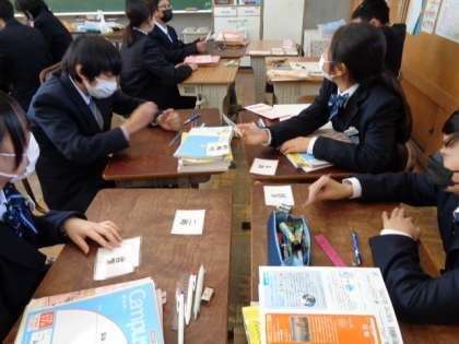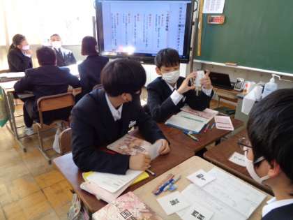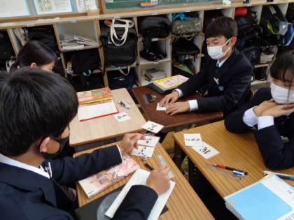 1年生の国語の授業は品詞。名詞の種類について、班毎に考えていました。