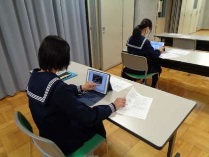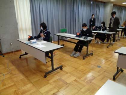 2年生の英語の授業は、来年度の全国学力・学習調査に向けての、英語聞き取りに関する事前調査。皆真剣に取り組んでいました。