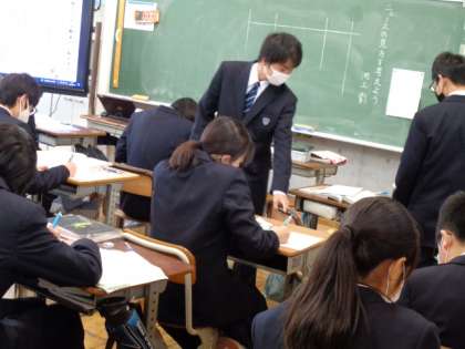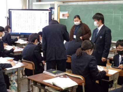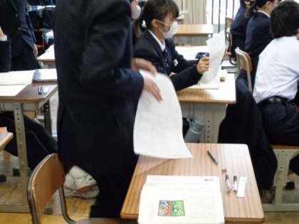 1年生の国語の授業は、「ニュースの見方」。プリントに考えをまとめて、意見交換をしていました。