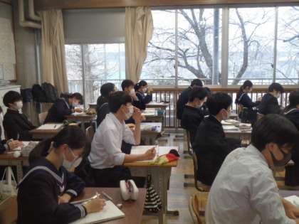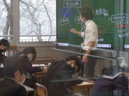 3年生の社会の授業は、中世ヨーロッパについて。先生の解説を真剣に聞いていました。