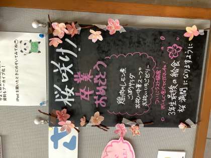献立ボードは宮城先生に作っていただいたマスキングテープの桜で飾り付けをしました。