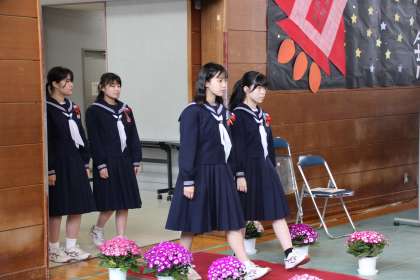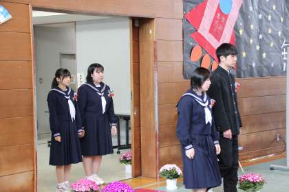 卒業生入場です。担任に続き、ゆっくりと入場してきました。
