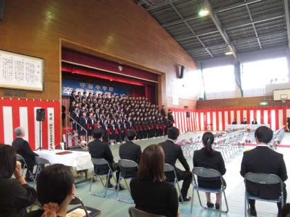 「友 さようなら そして ありがとう 再び会えるその時まで 友 僕たちが見上げる空はどこまでも続き 輝いている 同じ空の下 どこかで僕たちは いつも繋がっている」この歌詞をかみしめるように、心を一つにして歌った卒業生。晴れやかな表情で歌いきりました。