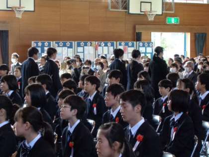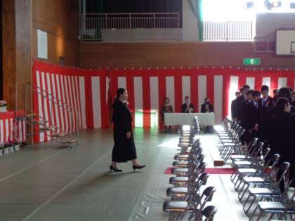 入学生は、皆はっきりと返事をし、いい姿勢で式に臨みました。退場の様子です。