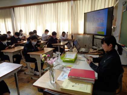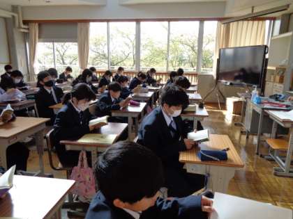 1年生の朝読書の時間。皆真剣に書に向かっていました。