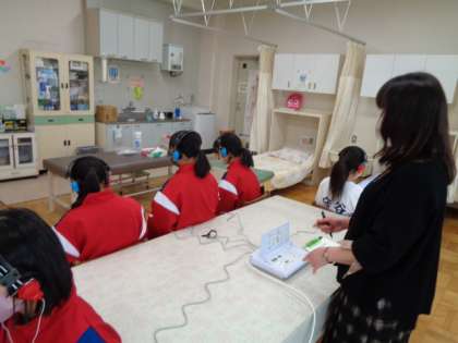 1年生は、保健室で聴力検査を行っていました。