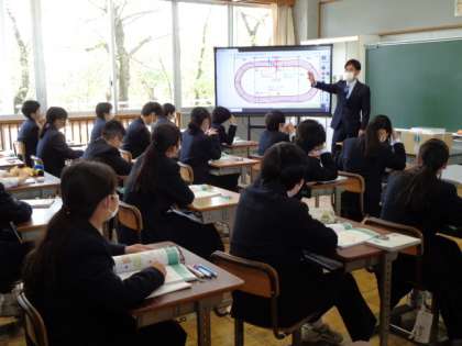 2年生の数学の授業は、式と計算の導入部分。グラウンドの外周を例にして考えていました。