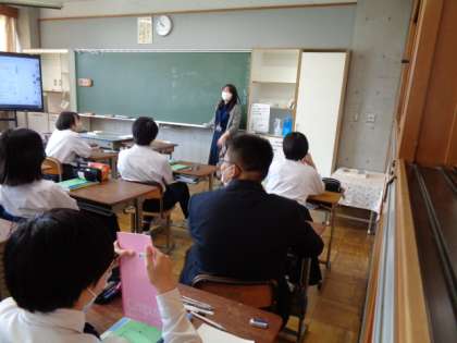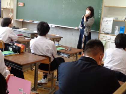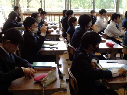 2年生の国語の授業の様子です。写真は昨日の様子。先生の自己紹介を興味津々で聞いていました。