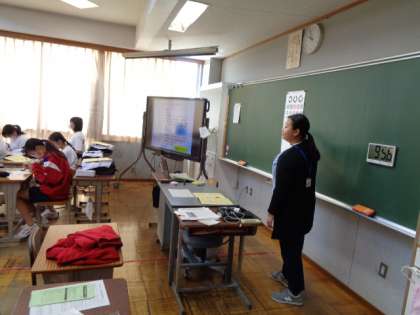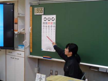 昨日1年生は視力検査を行いました。先生の指示に従って円滑に進めていました。