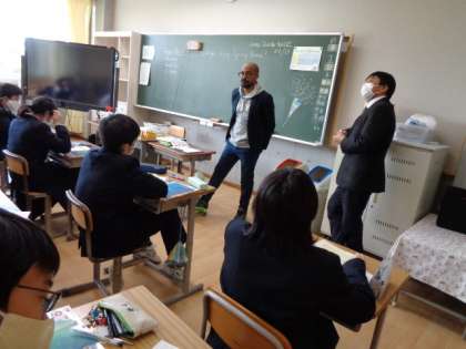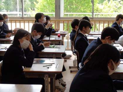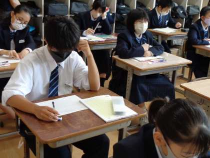 2年生の英語の授業。英作文づくりを行っていました。写真は昨日の様子です。タイ先生の注意を聞いた後に、作文づくりに意欲的に取り組んでいました。