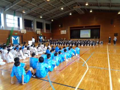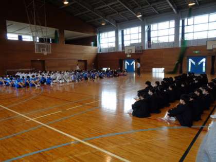 1年生とパフォーマンスを披露する各部活動の担当者、生徒会役員は体育館で、そのほかの2・3年生は教室でリモート参加します。