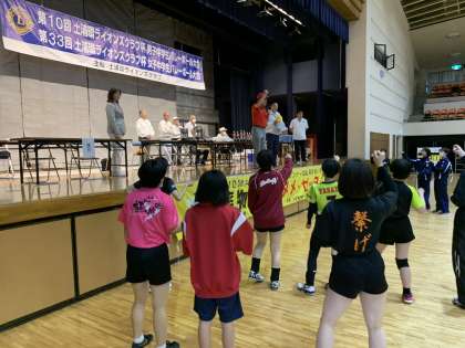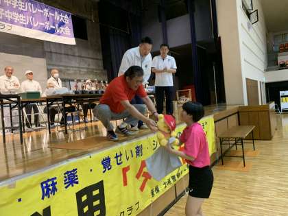 バレーボール部は、土浦環ライオンズクラブ杯に参加しています。開会式では恒例のジャンケン大会が行われ、見事勝ち抜いて賞品をいただきました。この調子で試合も勝ってください。