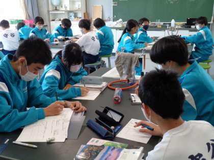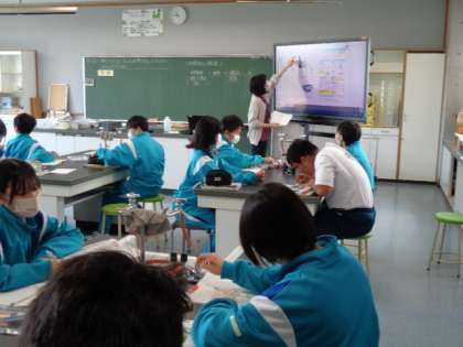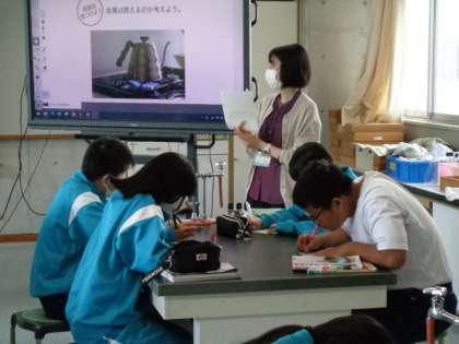 2年生の理科の授業は、物質の燃焼について。鉄やマグネシウム等の金属を加熱していきます。