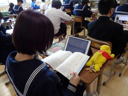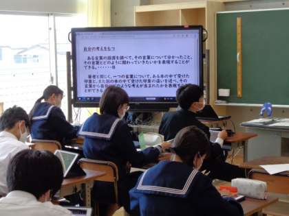 3年生の国語の授業は、随筆。自分の意見をまとめる活動をしていました。