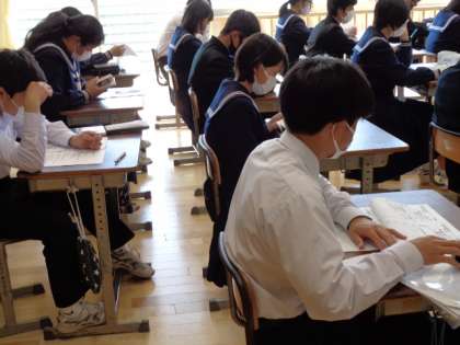 朝の時間は、読書の前に、明日行われる生徒総会の資料の読み合わせをしていました。