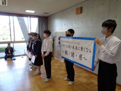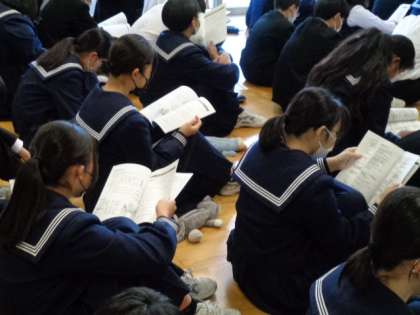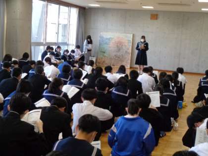 来週木曜日からの修学旅行に向けて、3年生は学年集会を行いました。皆真剣に臨んでいました。