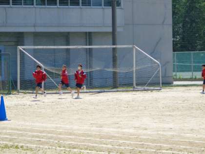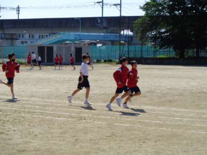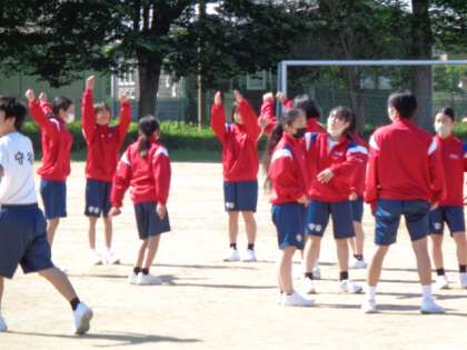 1年生の保健体育の授業は、50m走。まずは準備体操、ウオーミングアップを行います。
