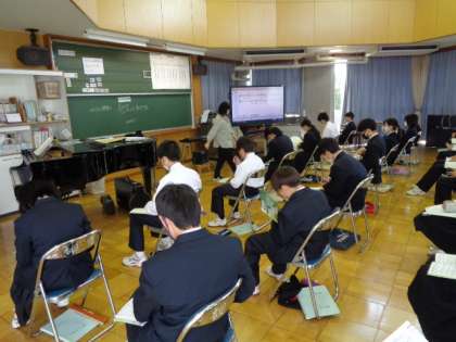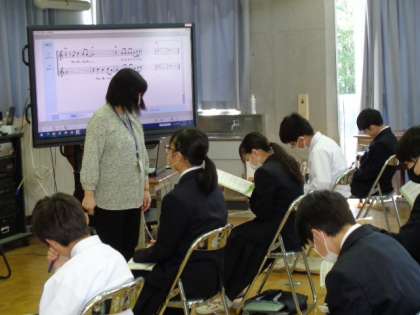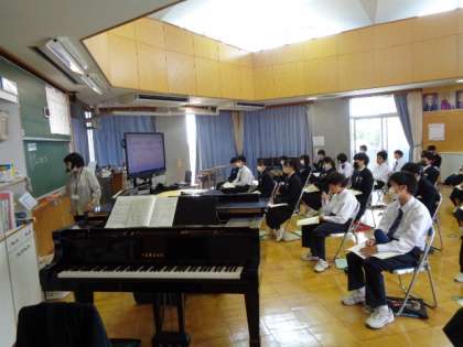 1年生の音楽の授業は、合唱。それぞれのパートの注意点を確認していました。