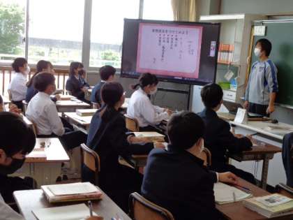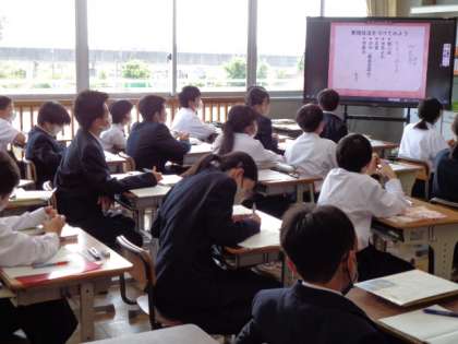 1年生の国語の授業。表現技法について、経験を基に話し合っていました。