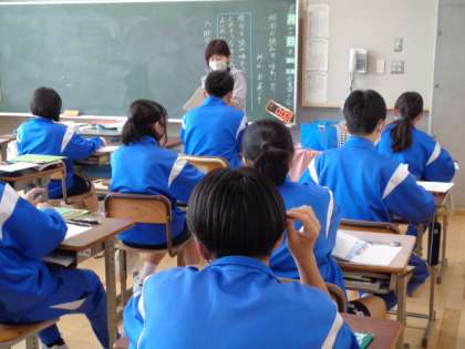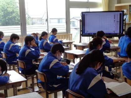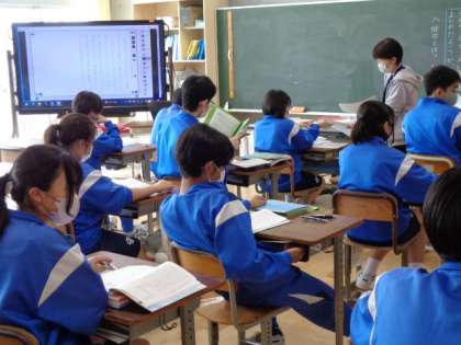 3年生の国語の授業は、俳句について。先生の説明を真剣に聞いていました。