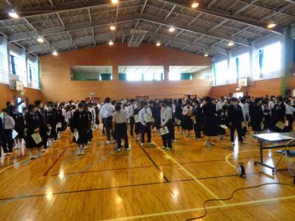 本日午後、体育館にて生徒総会を行いました。全校生徒が一堂に会し、整然とした雰囲気の中、行いました。