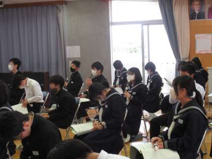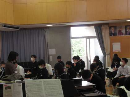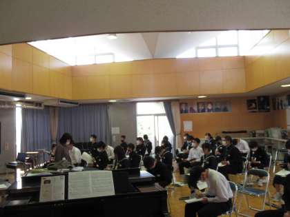 アルトリコーダーの演奏に取り組んでいます。美しい音色で演奏できるよう、モデル演奏を聴き、練習を重ねています。
