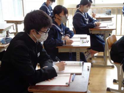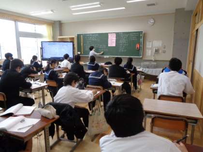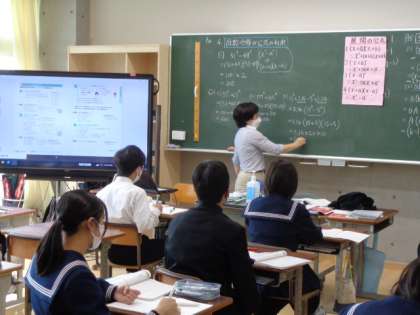 3年生の数学の授業は、因数分解の公式の活用について。皆真剣に取り組んでいました。