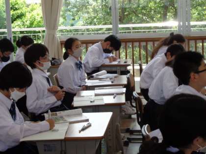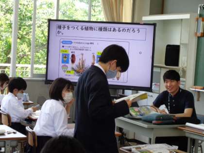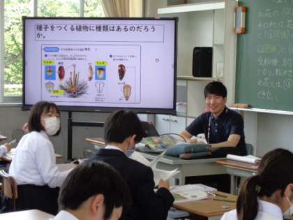 1年生の理科の授業は、種子のでき方について。穴埋め問題に取り組んでいました。
