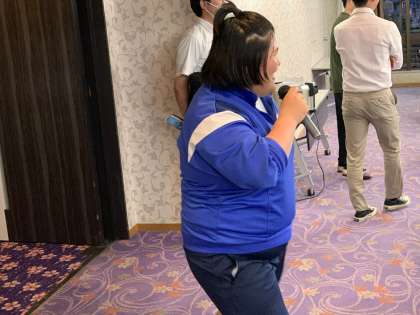 いただきますの後、ハッピーバースデーの歌が。お誕生日の友達を祝福しました。本人も祝福に応えました。