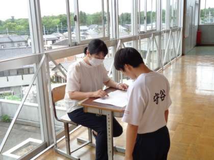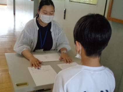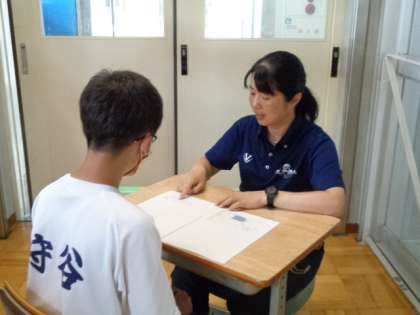 初めてのテスト個票配付。皆真剣に先生のアドバイスを聞いていました。