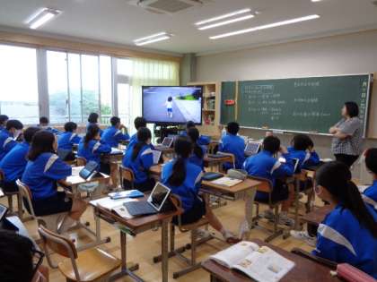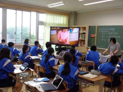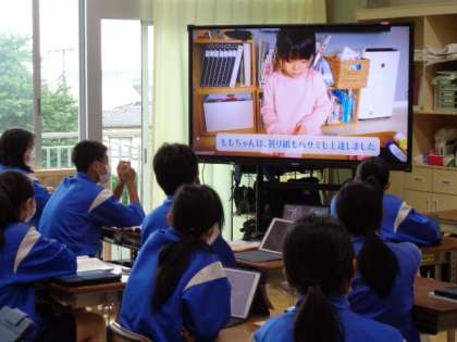3年生の家庭科の授業は、幼児教育。ビデオを観て、整理していました。
