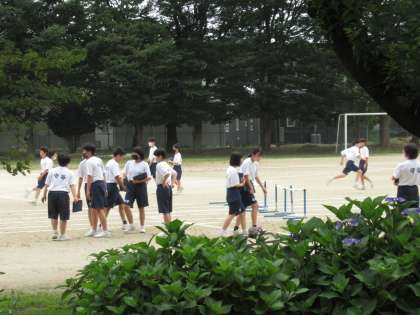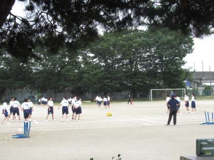 今日の学習はリレーです。グループでバトンバスの練習をしました。