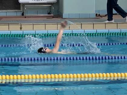 男子100m背泳ぎに出場した選手。自分の力を出し切って頑張りました。